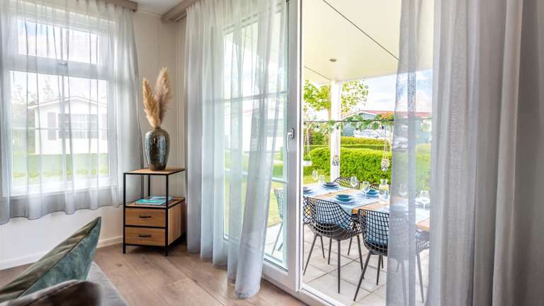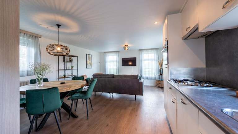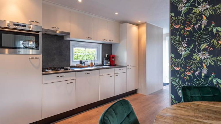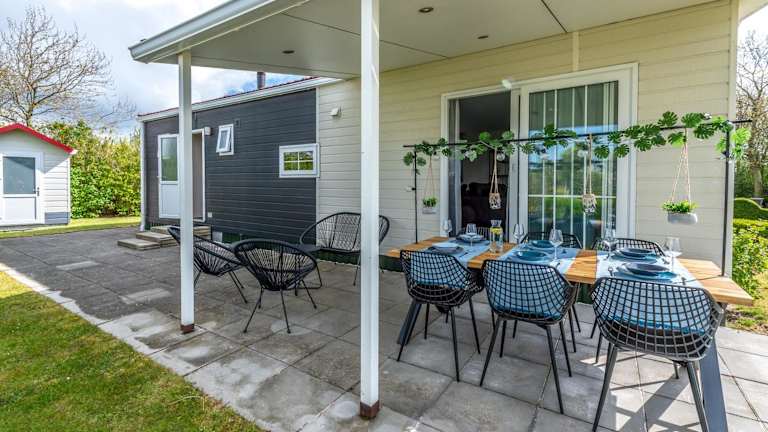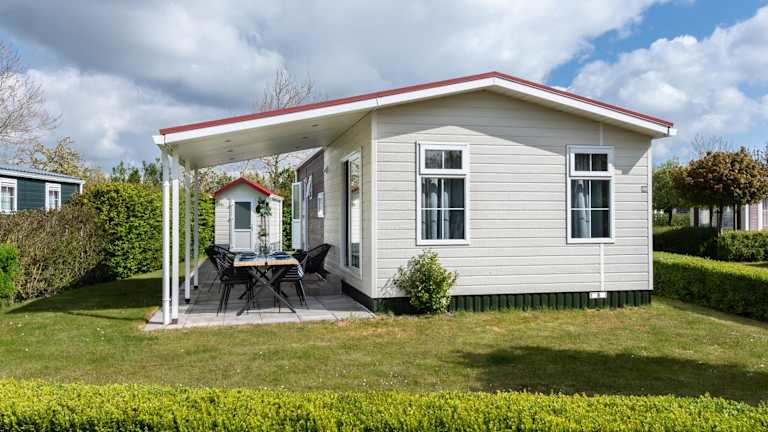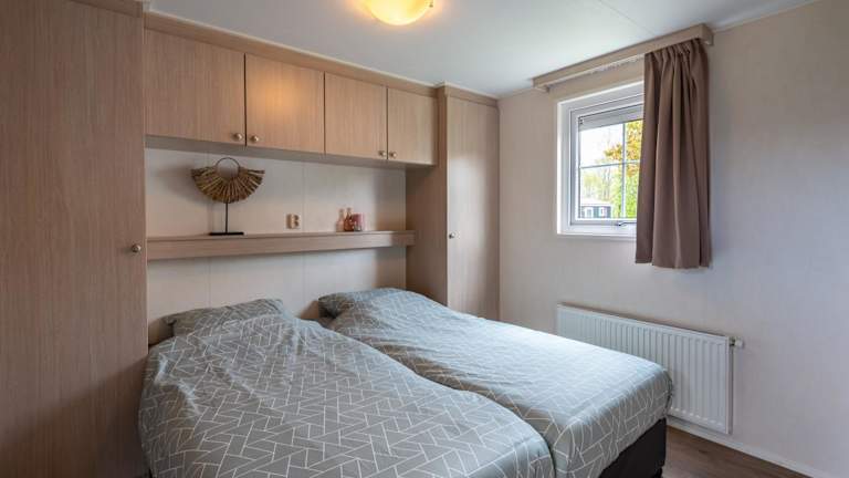 Das Luxe 5-persoons Chalet verfügt über 2 Schlafzimmer, ein geräumiges Wohnzimmer und eine voll ausgestattete Küche mit Kühlschrank und Backofen. Das Chalet bietet zudem eine Terrasse mit Blick auf den Garten, auf der Sie die frische Luft und die schöne Umgebung genießen können. Ein Flachbild-TV und kostenfreies WLAN sind ebenfalls vorhanden, um Ihnen einen angenehmen Aufenthalt zu ermöglichen.