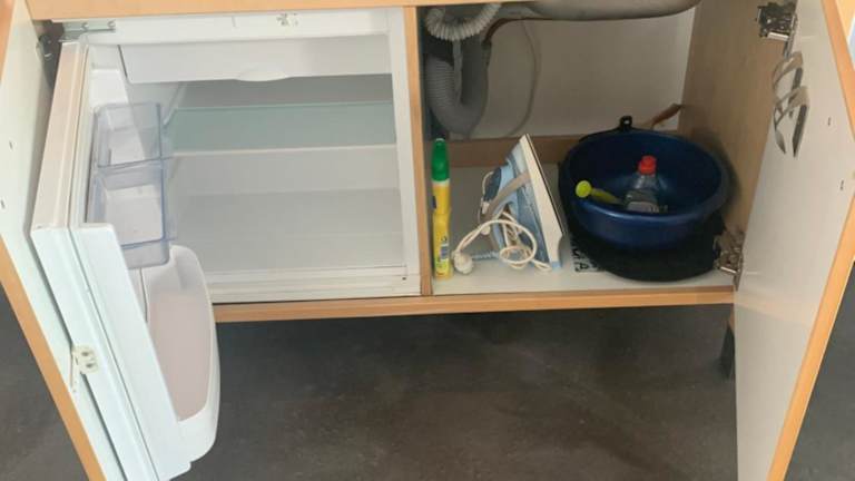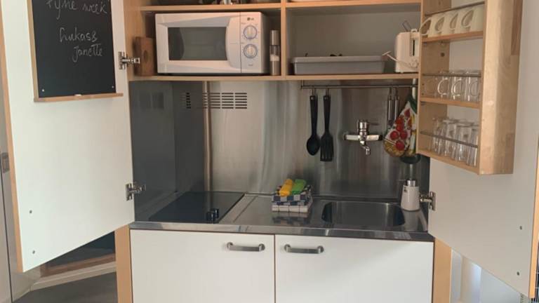 In der Küche der Ferienwohnung stehen ein Kühlschrank, eine Mikrowelle und eine Herdplatte zur Verfügung, jedoch sind keine weiteren Verpflegungsmöglichkeiten vorhanden.