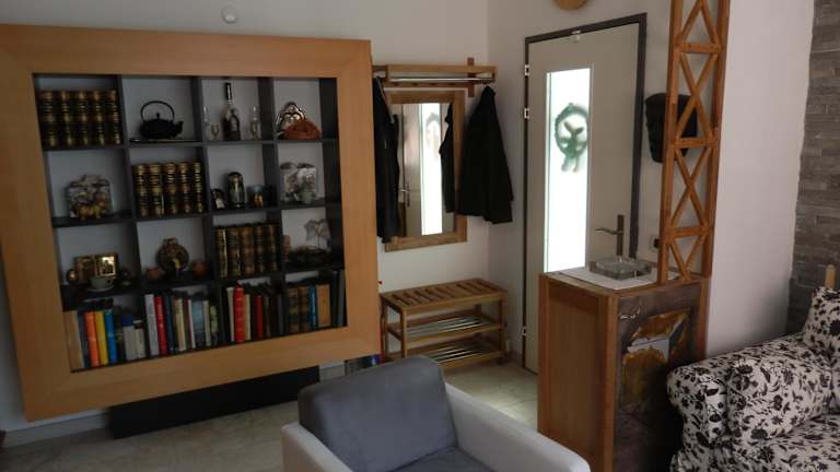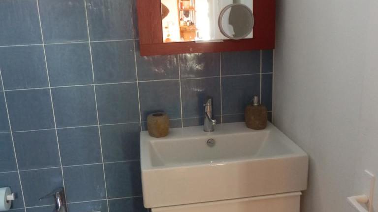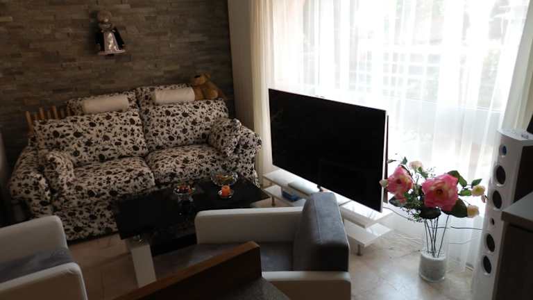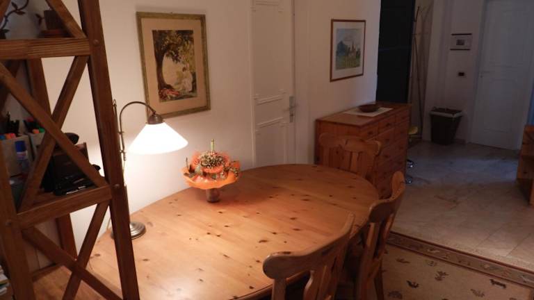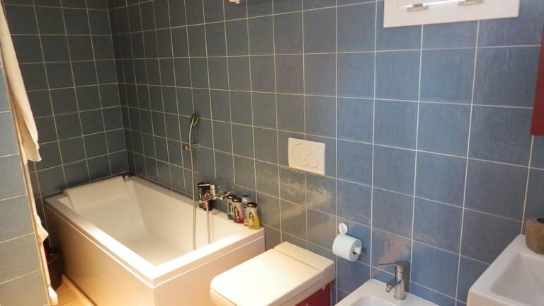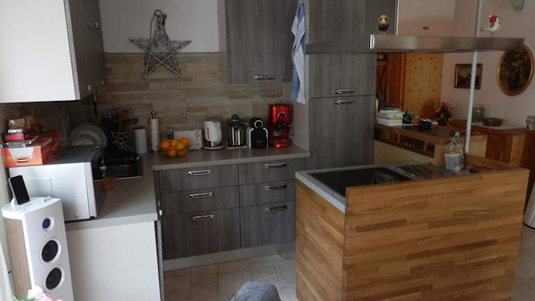 Das Apartment verfügt über eine voll ausgestattete Küche mit Kühlschrank, einen gemütlichen Sitzbereich, eine Waschmaschine und ein Badezimmer mit Bidet, Dusche und Badewanne. Die gemütliche Einrichtung des Apartments sorgt für ein heimeliges Ambiente.