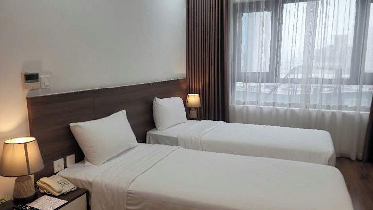 Das Hotel liegt im Zentrum Hanois. Typische Bauweise, schmal. Im Erdgeschoss liegt die Rezeption, anschließend der Frühstückraum. 9 Stockwerke mit 4 - 5 Zimmer.