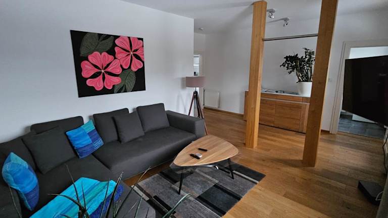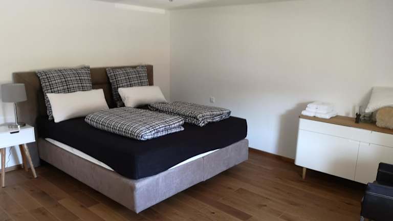 Die Ferienwohnung hat 2 Schlafzimmer und 1 Badezimmer. Zur Ausstattung gehören Bettwäsche, Handtücher, ein Flachbild-TV mit Satellitenkanälen, ein Essbereich sowie eine voll ausgestattete Küche. Eine Terrasse mit Blick auf die Berge lädt zum Verweilen ein.