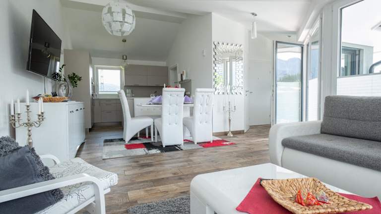 Die Ferienwohnung verfügt über zwei Schlafzimmer, ein geräumiges Wohnzimmer sowie eine gut ausgestattete Küche. Zu den Annehmlichkeiten gehören ein Satelliten-Flachbild-TV, ein Badezimmer mit Dusche und Whirlpool sowie das Angebot von Handtüchern und Bettwäsche.