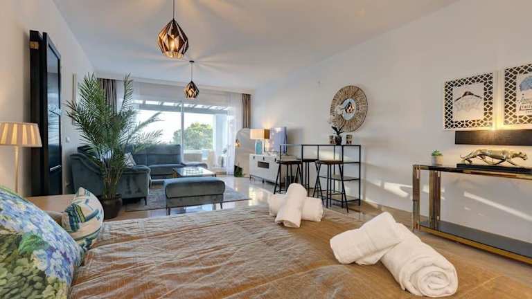 Die Unterkunft Luxurious 80m² studio apartment, stunning sea views - Rio Real Golf, Marbella bietet eine moderne und ansprechende Ferienwohnung mit Blick auf das Meer. Sie verfügt über einen Aussenpool, einen Garten und eine Terrasse, die zur Erholung einladen. Die Unterkunft ist bestens geeignet für einen entspannten Aufenthalt und wird von einem privaten Gastgeber geführt. Es sind keine Junggesellen-/Junggesellinnenabschiede oder ähnliche Feiern erlaubt.