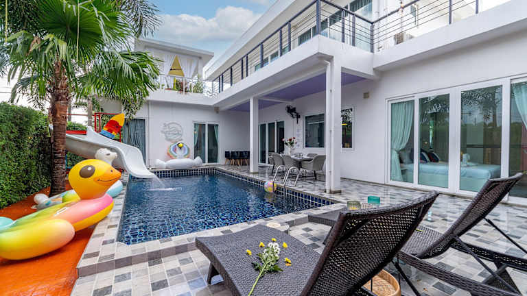 Die Luxurious and Playful 5 Bedroom Pool Villa - CC zeichnet sich durch klimatisierte Übernachtungsmöglichkeiten aus, die mit einem eigenen Pool und Poolblick ausgestattet sind. Die Villa verfügt über eine Veranda sowie einen Balkon und bietet eine Vielzahl von Annehmlichkeiten, darunter einen Billardtisch und kostenloses WLAN. Es handelt sich um eine Nichtraucherunterkunft, die keine Junggesellen-/Junggesellinnenabschiede oder ähnliche Feiern erlaubt. Der Check-in erfolgt zwischen 15:00 und 19:00 Uhr, der Check-out muss bis 11:00 Uhr erfolgen.