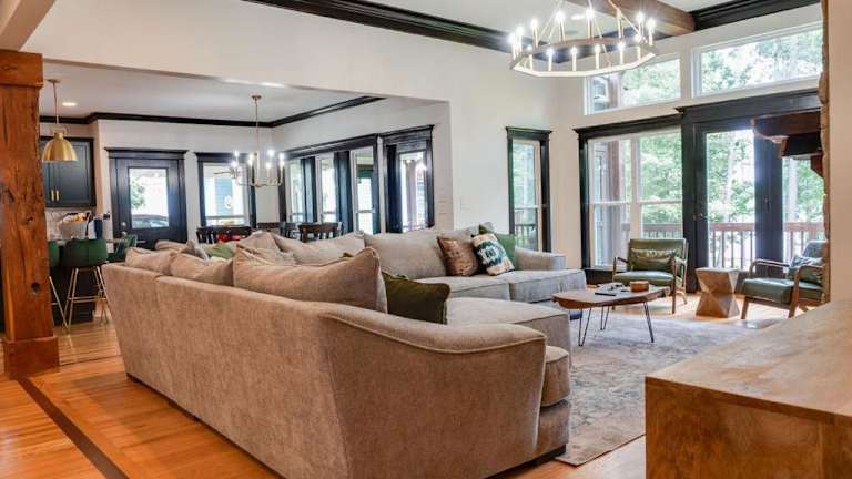 Luxurious Lake Front Estate, Sleeps 20, Game Room and Pet Friendly ist eine geräumige Villa, die Platz für bis zu 20 Gäste bietet. Die Unterkunft ist pet friendly und bietet eine Gemeinschaftslounge sowie eine Gemeinschaftsküche. Eine Terrasse mit Seeblick lädt zum Verweilen ein. Zudem stehen verschiedene Freizeitmöglichkeiten zur Verfügung, darunter Tischtennis und Kanu fahren.