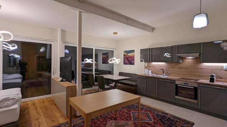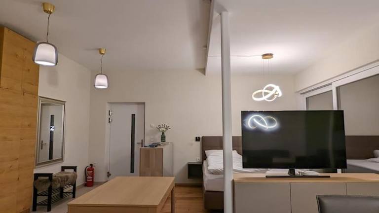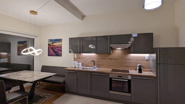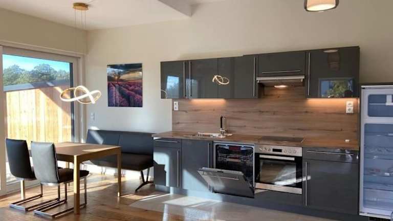 Die Ferienwohnung verfügt über ein Schlafzimmer, eine gut ausgestattete Küche mit Kühlschrank und Geschirrspüler, einen Flachbild-TV und einen einladenden Sitzbereich. Das Badezimmer ist mit einer Dusche ausgestattet. Handtücher und Bettwäsche werden bereitgestellt. Allergikerfreundliche Zimmer sind ebenfalls verfügbar.