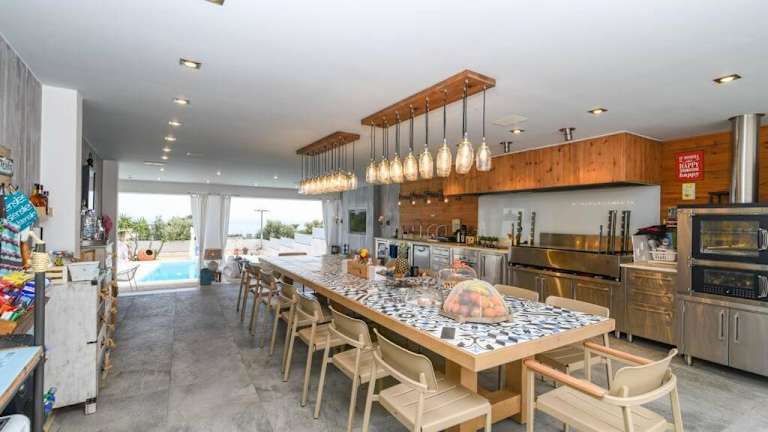 Die Villa bietet eine gut ausgestattete Küche, in der die Gäste selbst Mahlzeiten zubereiten können. Zudem stehen Grillmöglichkeiten zur Verfügung. In der Gemeinschaftsküche können auch Snacks oder kleinere Gerichte zubereitet werden. Es sind keine Informationen zu weiteren Verpflegungsmöglichkeiten vorhanden.