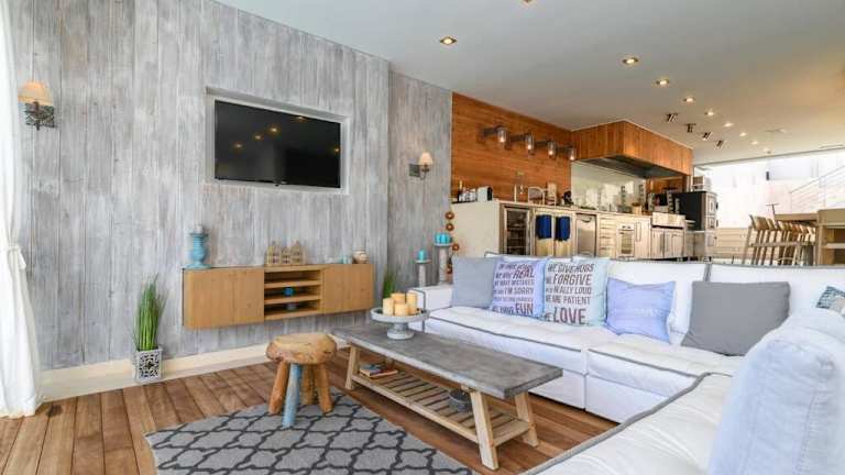Die Villa umfasst 5 Schlafzimmer, die über ein Balkon verfügen, sowie 4 Badezimmer mit Dusche und kostenlosen Pflegeprodukten. Zu den Annehmlichkeiten zählen zudem ein Flachbild-TV und eine Terrasse mit Meerblick. Die Zimmer sind klimatisiert und bieten den Gästen eine heimelige Atmosphäre.
