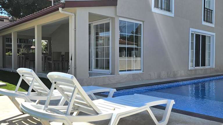 Die Luxury 5BR Villa w Pool & Beach Access Ayvalık ist eine Unterkunft direkt am Strand und bietet Übernachtungsmöglichkeiten mit einem saisonalen Außenpool, einem Garten, einem eigenen Strandbereich sowie kostenlosem WLAN. Die Villa ist privat geführt und weist eine Nichtraucherpolitik auf sowie eine Altersgrenze für den Check-in von 18 Jahren.