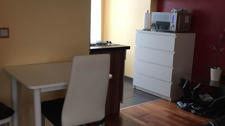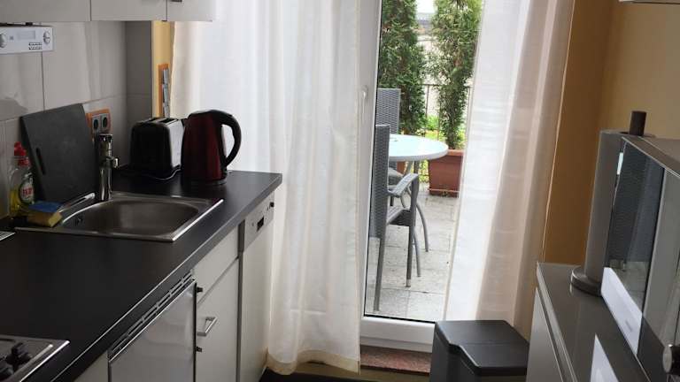 In der Unterkunft befindet sich eine voll ausgestattete Küche mit einem Kühlschrank und einer Kaffeemaschine, die die Zubereitung eigener Mahlzeiten ermöglicht. Zusätzlich besteht die Möglichkeit, sich mit Essenslieferungen in die Unterkunft zu verpflegen, wobei die gelieferten Speisen sicher verpackt sind.
