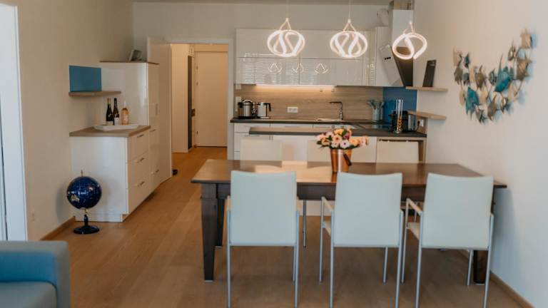 Die Ferienwohnung verfügt über 2 Schlafzimmer, ein Wohnzimmer mit Fernseher, eine voll ausgestattete Küche mit Kühlschrank und Geschirrspüler sowie 2 Badezimmer mit Haartrockner. Handtücher und Bettwäsche werden zur Verfügung gestellt.