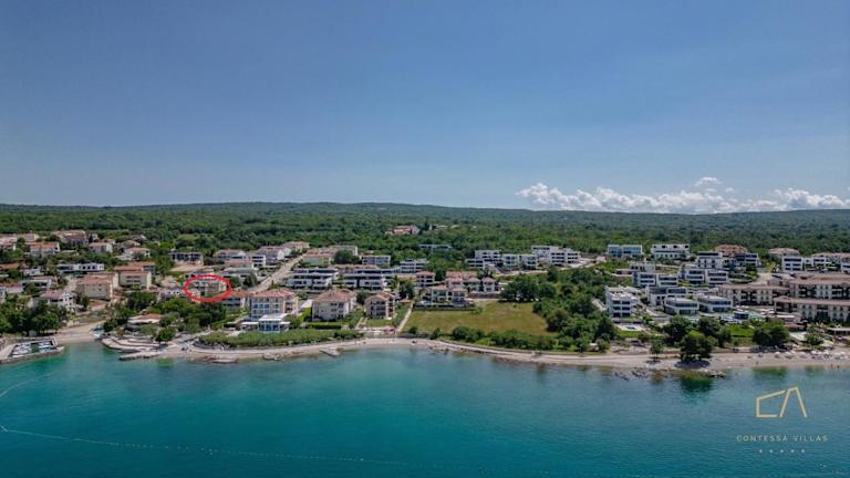 Die Villa Mande liegt in einer grünen Umgebung, nur 70 m vom Meer entfernt. Das nächste Lebensmittelgeschäft ist 550 m entfernt, während das Zentrum von Malinska 2,5 km und die Stadt Krk 12 km entfernt ist. Der Flughafen Rijeka ist 17 km und die Stadt Rijeka mit dem Fährhafen 40 km entfernt.