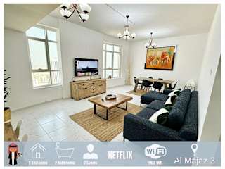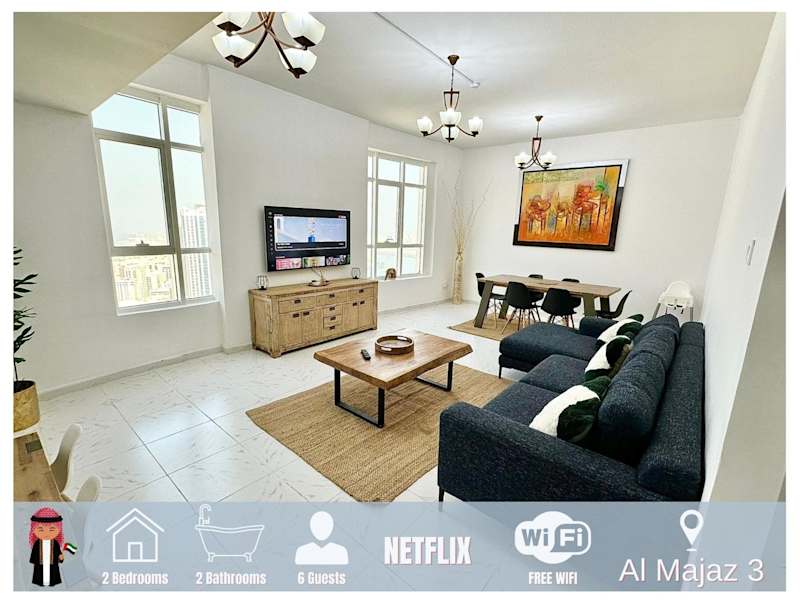 Das Luxury Appartement Amazing View 130m2 Al Majaz 3 bietet eine komfortable Ferienwohnung mit Seeblick und ist mit Klimaanlage und kostenlosem WLAN ausgestattet. Die Unterkunft erlaubt keine Feiern und ist eine Nichtraucherunterkunft, in der auch Haustiere nicht gestattet sind.