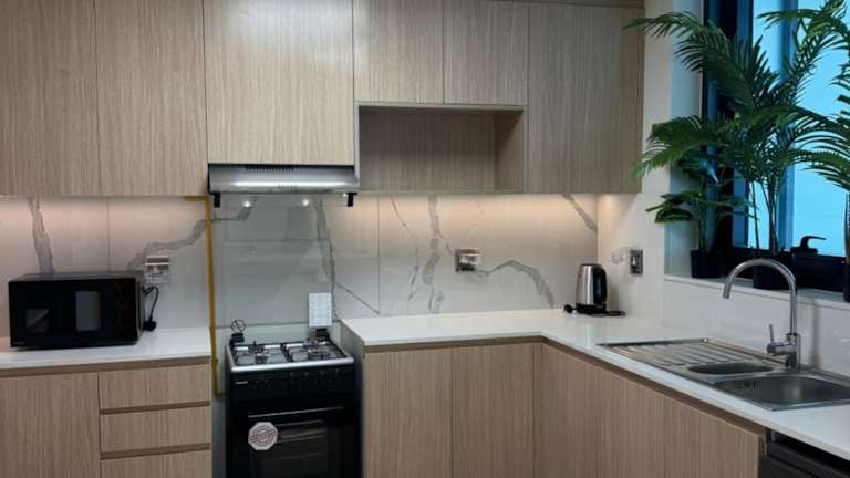 Das LUXURY 2 Bedroom Apartment in GATEWAY Residence bietet eine moderne Ausstattung mit einem Aussenpool, einem Fitnesscenter und einem eigenen Strandbereich. Das Apartment verfügt über eine eigene Terrasse und eine Gemeinschaftslounge, ideal für geselliges Beisammensein. Zudem steht ein Kinderspielplatz zur Verfügung.