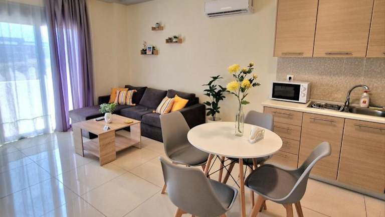 Die Ferienwohnung luxury - comfy center rodos verfügt über einen Balkon mit Meer- und Bergblick. Sie bieten kostenloses WLAN und Klimaanlage. Die Unterkunft bietet eine voll ausgestattete Küche sowie ein Wohnzimmer und ein Badezimmer.