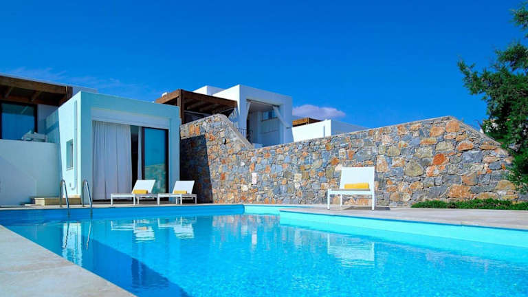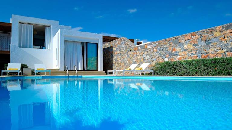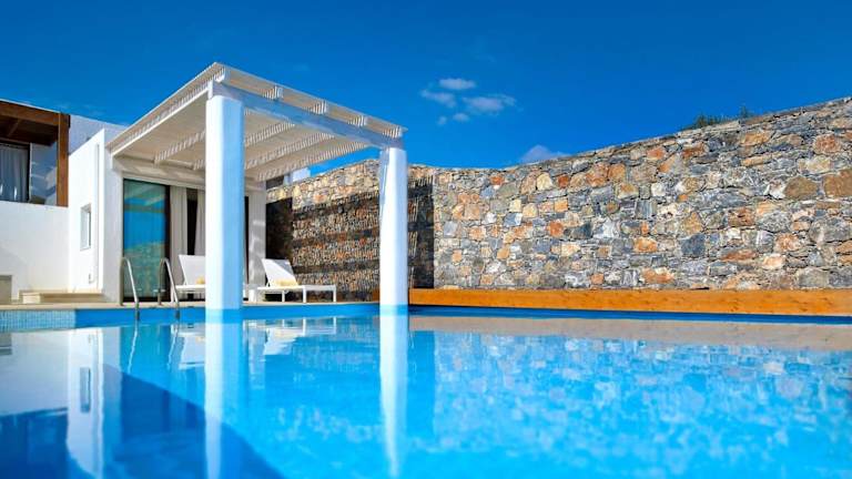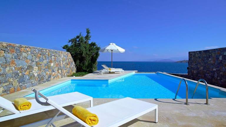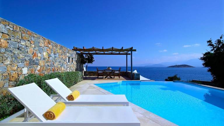 Die Luxury Crete Villa Sea View Villa Private Pool Ocean Front 3 BDR Nikolaos bietet Übernachtungsmöglichkeiten mit einem eigenen Aussenpool und kostenlosem Wifi.