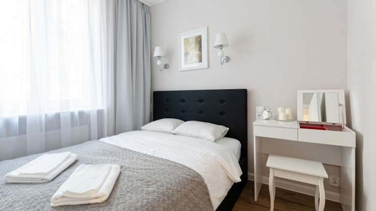 Die Ferienwohnung ist mit einem Wohnzimmer ausgestattet, welches einen Flachbild-TV mit Satellitenkanälen bietet. Die voll ausgestattete Küche verfügt über einen Kühlschrank und einen Geschirrspüler. Die Ferienwohnung hat ein Schlafzimmer und ein Badezimmer mit einer Dusche. Handtücher und Bettwäsche werden zur Verfügung gestellt.