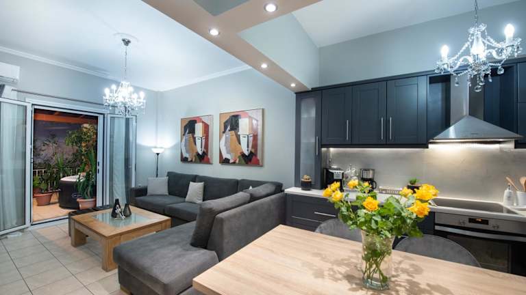 Das Luxury Katrinas Apartment mit Outdoor-Jacuzzi bietet eine moderne und für Ferien bestens geeignete Unterkunft mit zahlreichen Annehmlichkeiten, darunter kostenloses Wifi und eine einladende Terrasse. Die Ferienwohnung verfügt über Klimaanlage und einen eigenen Whirlpool, ideal für entspannte Stunden.