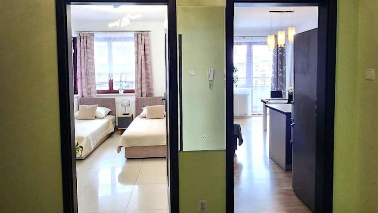 Die Unterkunft befindet sich im Bezirk Pradnik Czerwony in Krakau, in der Nähe vom Aqua-Park Kraków. Der Hauptbahnhof Krakau ist 4,7 km und das Florianstor 5 km entfernt. Der nächstgelegene Flughafen, Flughafen Johannes Paul II. Krakau-Balice, liegt 17 km entfernt.