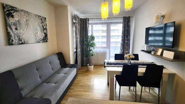 Die Unterkunft Luxury KINGS RESIDENCE 50m2 2 pok. Downtown Dobrego Pasterza PIĘKNY bietet ein modernes Ambiente mit einer Terrasse, kostenlosem Wifi und einer Waschmaschine. Zudem profitieren die Gäste von einer Veranda sowie einem Kinderspielplatz.