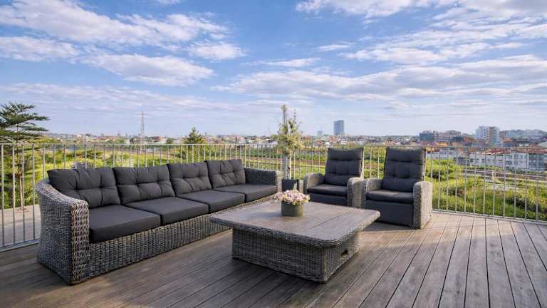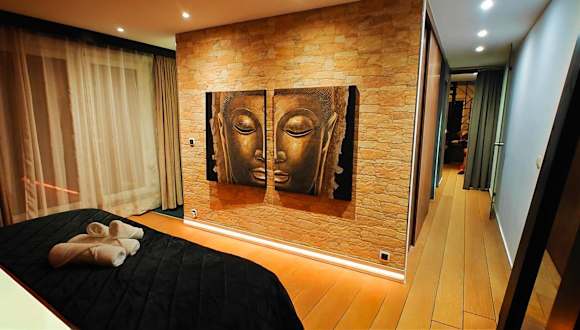 Das Penthouse verfügt über 3 Schlafzimmer und 2 Badezimmer mit Dusche und Badewanne. Die Küche ist ausgestattet mit einem Kühlschrank, Geschirrspüler und Ofen. Ein Blu-ray-Player sowie ein Sitzbereich und Essbereich im Wohnzimmer sind ebenfalls vorhanden. Handtücher und Bettwäsche werden zur Verfügung gestellt.