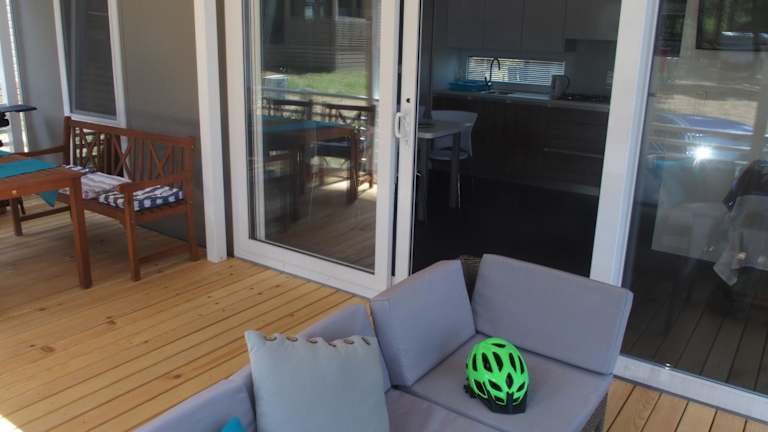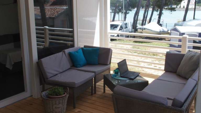 Das Luxury MobileHome Lucina Bay bietet Übernachtungsmöglichkeiten in einer geräumigen Ferienwohnung mit saisonalem Aussenpool, einer Terrasse sowie einer Bar. Die Unterkunft hat über kostenloses WLAN und bietet einen schönen Meerblick.
