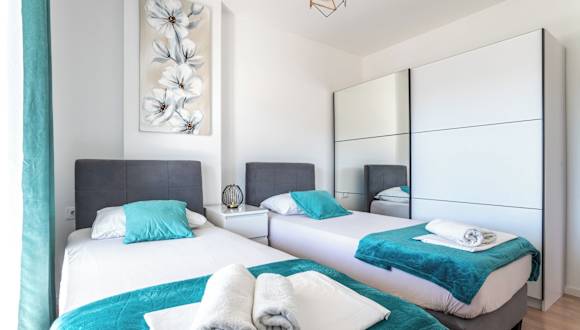 Diese moderne Ferienwohnung im Penthouse-Stil bietet Platz für bis zu 6 Gäste. Die Unterkunft ist klimatisiert und verfügt über einen eigenen Whirlpool, sowie eine grosszügige Terrasse, die zum Entspannen einlädt. Die Nichtraucherunterkunft bietet eine heimelige Atmosphäre und moderne Annehmlichkeiten.