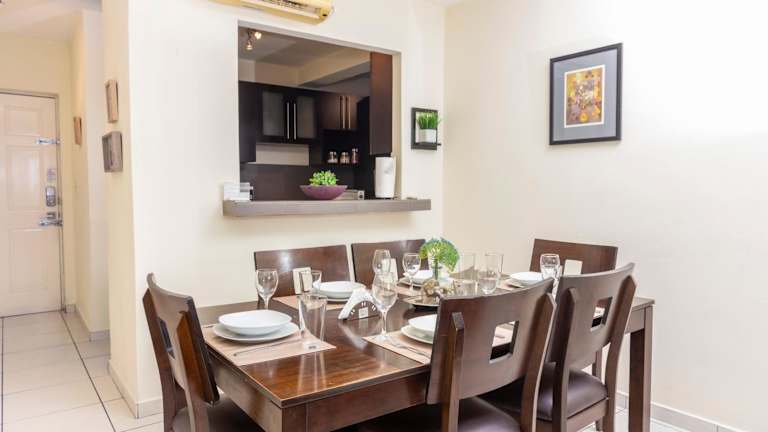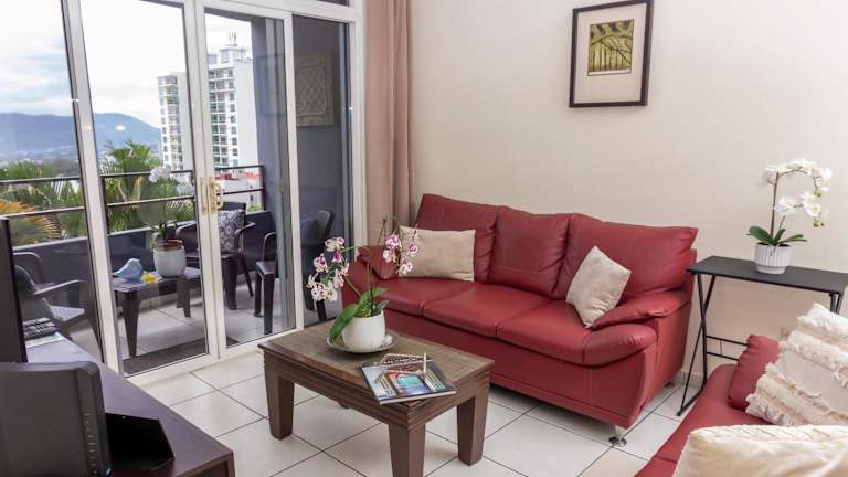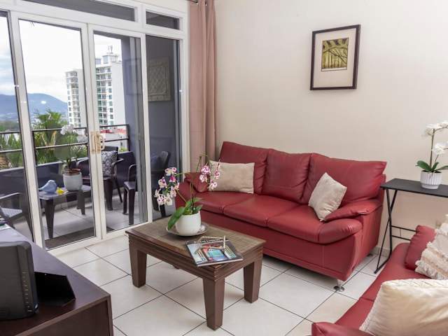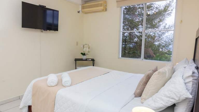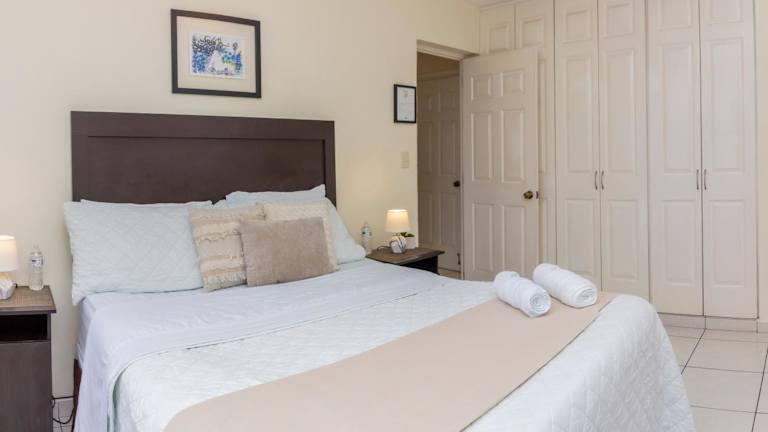 Das Apartment bietet insgesamt 3 Schlafzimmer, ein Wohnzimmer und verfügt über 2 Badezimmer. Klimaanlage ist in wichtigen Bereichen wie dem Wohnzimmer und dem Hauptschlafzimmer vorhanden, während die weiteren Schlafräume mit Deckenventilatoren ausgestattet sind. Handtücher und Bettwäsche sind im Angebot inbegriffen.