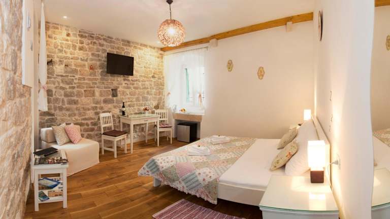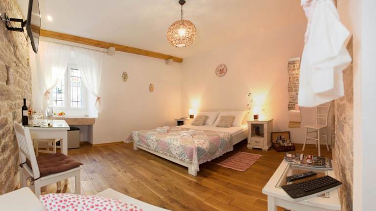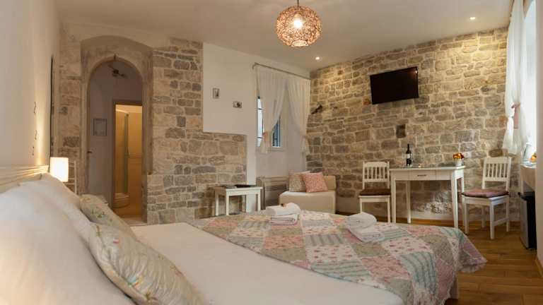 Das Luxury Room Kokola bietet Ihnen ein komfortables Zimmer auf der 1. Etage eines Privatgebäudes. Das Zimmer ist klimatisiert und verfügt über Parkettböden, Steinmauern und eine moderne Einrichtung. Zur Ausstattung gehören ein Smart-TV, ein Kühlschrank und kostenloses WLAN. Das private Badezimmer ist mit einem Haartrockner und kostenfreien Pflegeprodukten ausgestattet. Hier können Sie sich nach einem erlebnisreichen Tag in Split entspannen und erholen.