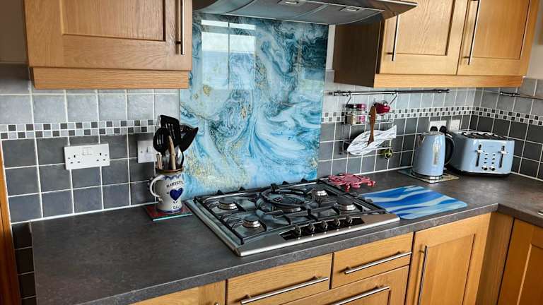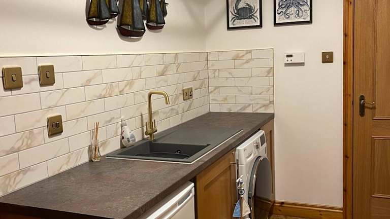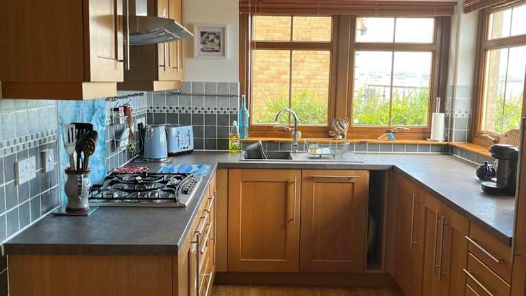 Die Ferienwohnung beinhaltet eine Küche mit einem Kühlschrank, Geschirrspüler und Ofen, wodurch die Selbstverpflegung möglich ist. Grillmöglichkeiten sind ebenfalls vorhanden.