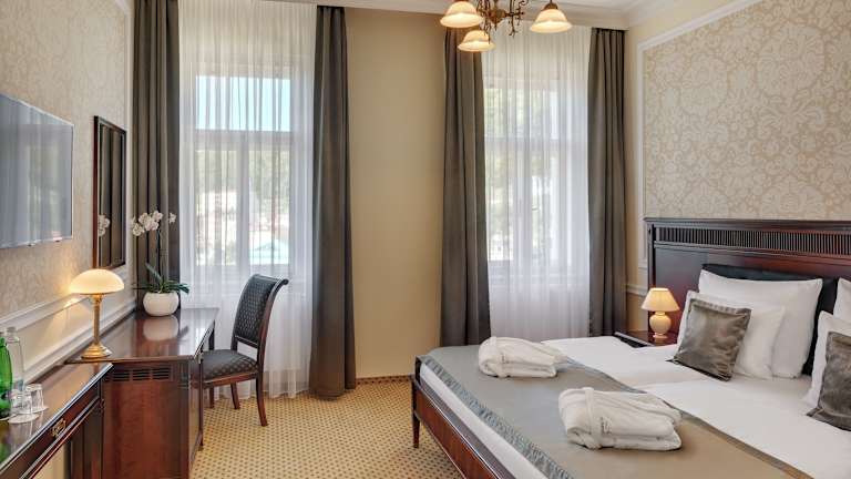 Buchen Sie das Luxury Spa Hotel Olympic Palace für einen luxuriösen und entspannten Aufenthalt in Karlsbad. Das Hotel bietet ein erstklassiges Wellnesscenter, kostenfreies WLAN und luxuriöse Unterkünfte. Genießen Sie die Salzgrotte, das Wellnesscenter mit Mineralwasser und die Sonnenterrasse. Das Restaurant in der Unterkunft bietet köstliche Mahlzeiten. Die Zimmer sind stilvoll eingerichtet und verfügen über einen Flachbild-Sat-TV. Einige Zimmer bieten zudem eine Terrasse oder einen Balkon. Das Hotel verfügt über eine 24-Stunden-Rezeption für Ihren Komfort. Besuchen Sie die nahegelegene Mühlenkolonnade und die Marktkolonnade für einen Spaziergang. Der Flughafen Karlsbad ist nur 3 km entfernt.