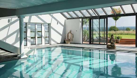 Im Ferienhaus können Gäste Velofahren und im Innenpool schwimmen. Zudem steht ein Kinderspielplatz zur Verfügung.