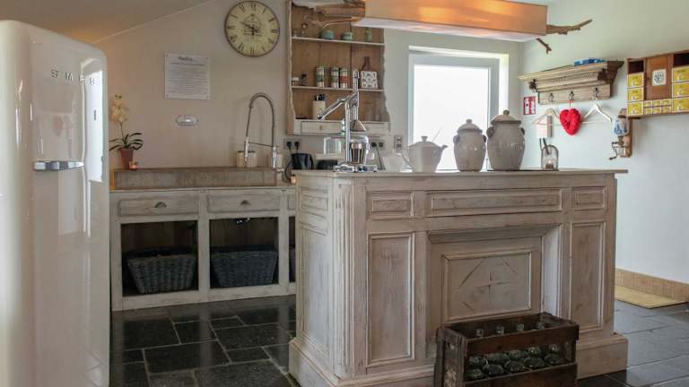 Das Ferienhaus bietet 2 Schlafzimmer, ein Wohnzimmer mit TV, eine gut ausgestattete Küche mit Kühlschrank und Geschirrspüler sowie 2 Badezimmer mit Dusche. Die Terrasse bietet Gartenblick.