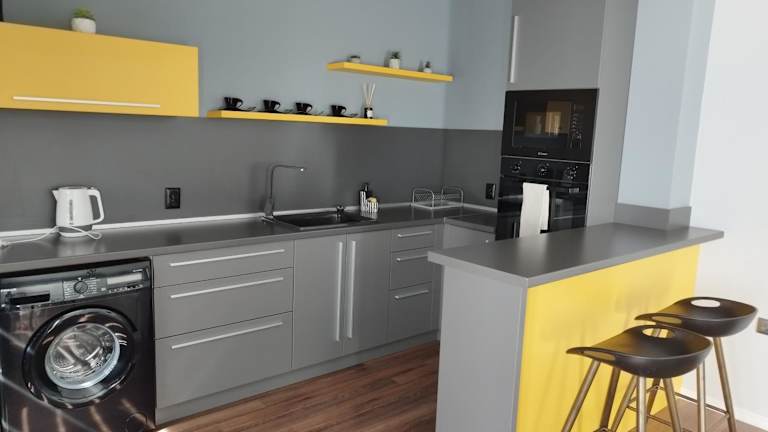 Die Ferienwohnung umfasst ein Schlafzimmer, ein Wohnzimmer und eine voll ausgestattete Küche mit Kühlschrank und Kaffeemaschine. Das Badezimmer verfügt über eine Dusche und kostenlose Pflegeprodukte. Handtücher und Bettwäsche werden zur Verfügung gestellt. Die Zimmer sind klimatisiert und Nichtraucherzimmer.