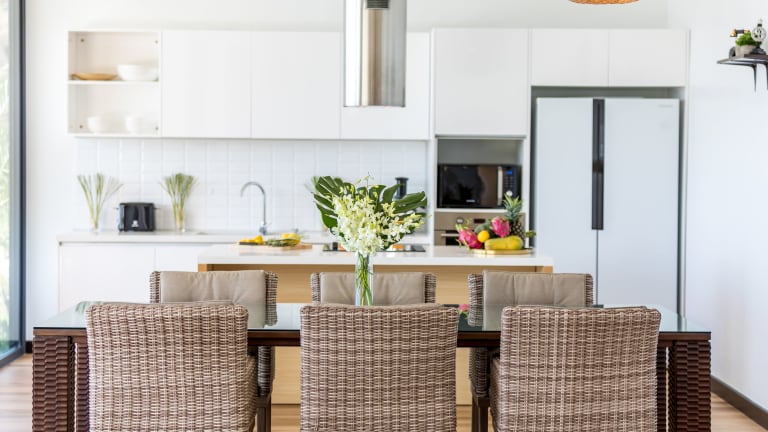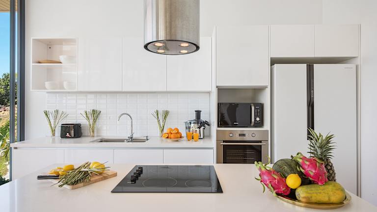 Die Villa umfasst drei Schlafzimmer, ein Wohnzimmer, eine voll ausgestattete Küche mit Kühlschrank und Kaffeemaschine sowie ein Badezimmer mit Bidet und Dusche. Handtücher und Bettwäsche werden bereitgestellt.