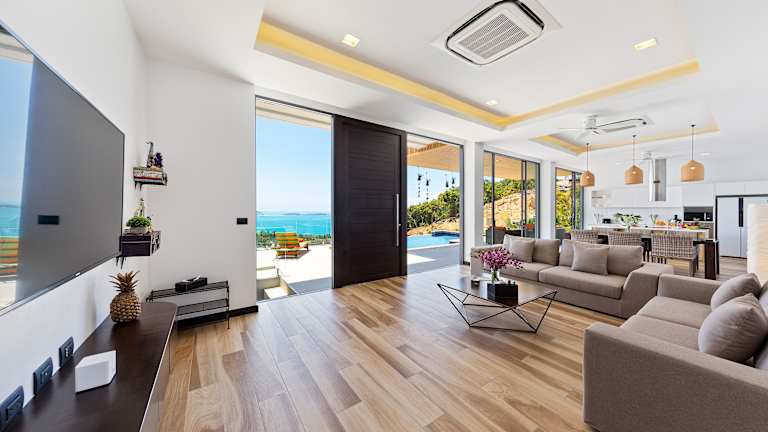 Die Samui Villa Bebe ist eine komfortable Unterkunft mit herrlichem Meerblick. Sie bietet Übernachtungsmöglichkeiten mit Terrasse und Balkon. Zudem steht ein kostenloser Privatparkplatz zur Verfügung. Die Villa ist klimatisiert und beinhaltet drei Schlafzimmer, ein Wohnzimmer sowie eine voll ausgestattete Küche.