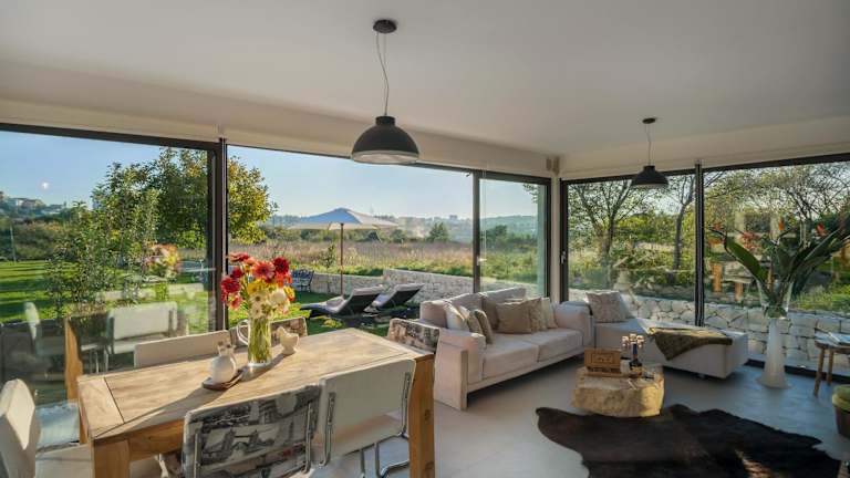 Die Luxury Villa Luminosa ist eine klimatisierte Unterkunft mit einem beheizten eigenen Pool und einer Sonnenterrasse. Die Villa zeichnet sich durch ein helles Wohnzimmer mit raumhohen Fenstern und einem Flachbild-Kabel-TV aus. Eine voll ausgestattete Küche sowie ein Esszimmer mit einem Holz-Esstisch sind ebenfalls vorhanden. Die Terrasse im Landhausstil mit Steinkamin und Grillmöglichkeiten bietet eine heimelige Atmosphäre.