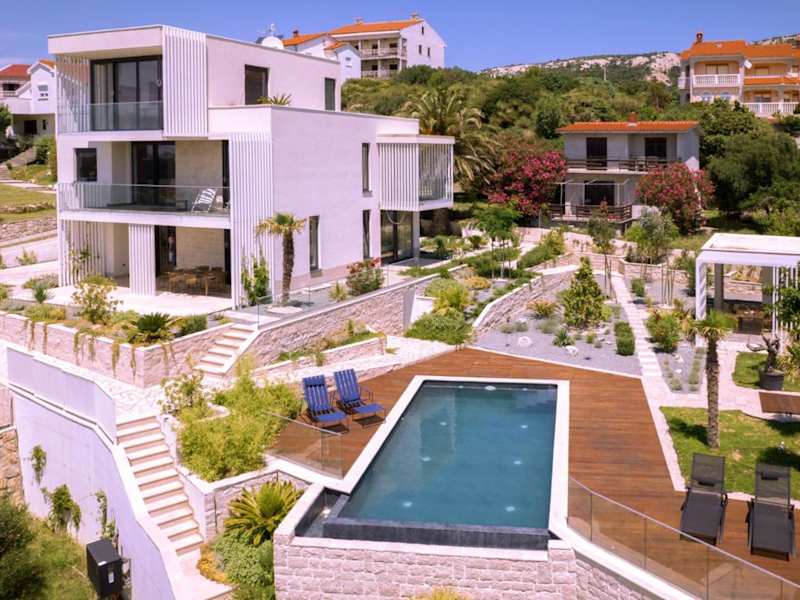 Die Luxury villa Mar mit Infinity-Pool in Rab verfügt über einen eigenen Pool, einen Garten und kostenloses Wifi. Die Villa hat eine moderne Einrichtung und bietet eine entspannende Atmosphäre.