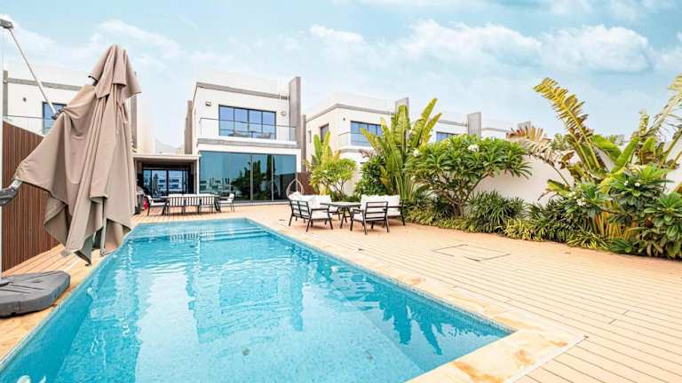 Die Luxury Villa sea view and free paddle boat - Al Dana Island Fujairah bietet eine heimelige Atmosphäre mit einem Aussenpool, einem Garten und einem eigenen Strandbereich. Die Unterkunft verfügt über kostenloses WLAN und beeindruckt durch einen Blick auf das Meer.