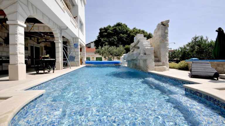 Die Unterkunft Luxury Villa with Pool, Jacuzzi, Sauna and Gym befindet sich in Trogir, in der Nähe des Flughafens Split, welcher nur 2 km entfernt ist. In der Umgebung befinden sich Sehenswürdigkeiten wie der archäologische Park Salona in 20 km und das Mladezi Park-Stadion in 24 km Entfernung.
