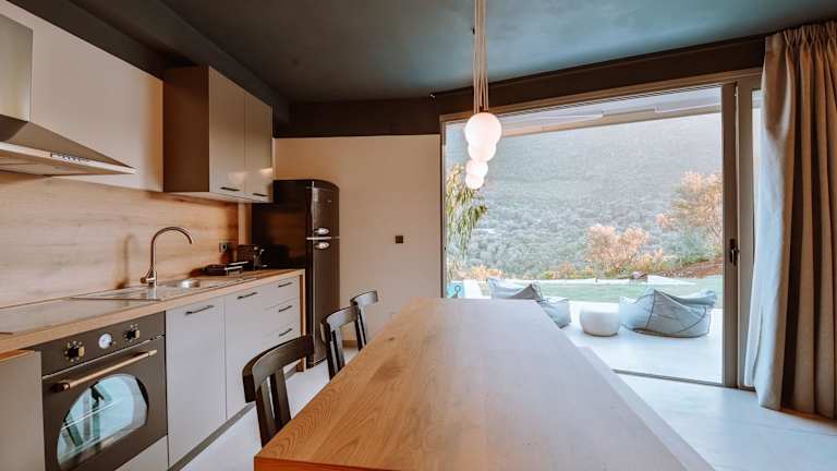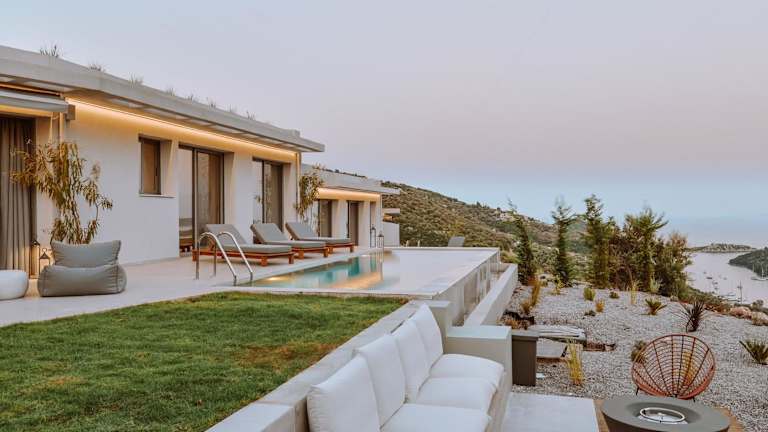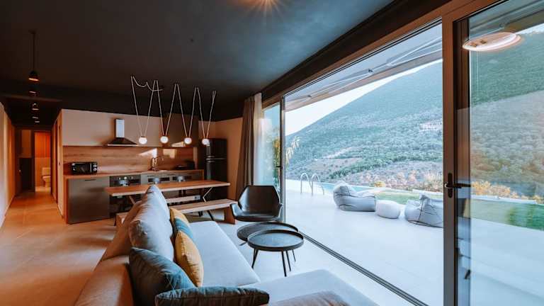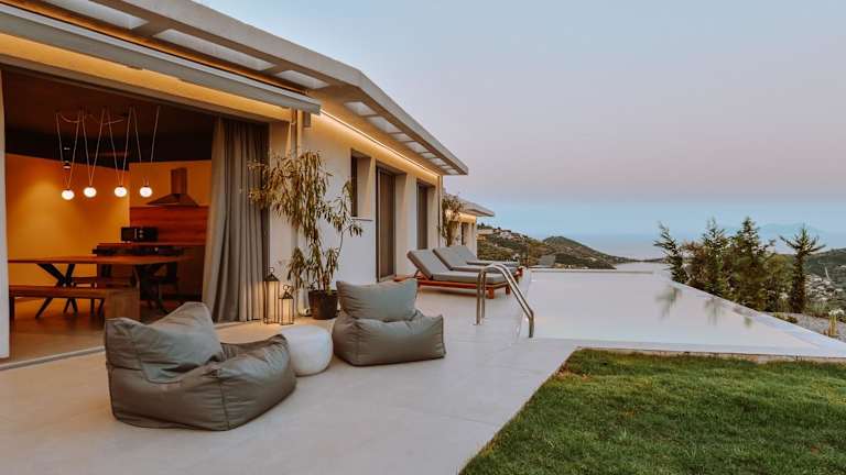 Die Luxury Villas Theros mit privaten Pools befinden sich in der malerischen Region Syvota, umgeben von wunderschönen Landschaften und nur 2,7 km von der Ksilokeratidi-Bucht entfernt. Der Hafen Vasiliki ist in 10 km erreichbar. Der nächstgelegene Flughafen ist der Flughafen Aktion, welcher sich 51 km entfernt befindet.