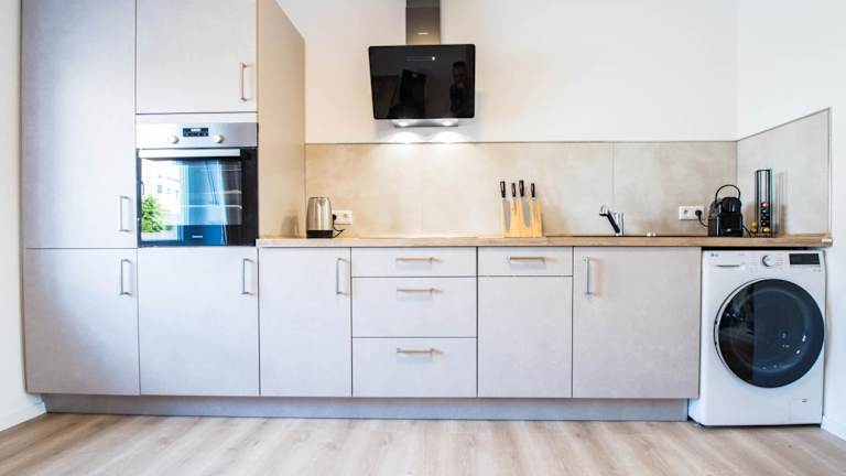 Die Ferienwohnung verfügt über 1 Schlafzimmer, eine Küche mit Kühlschrank und Geschirrspüler, einen Flachbild-TV, einen Sitzbereich sowie ein Badezimmer mit Dusche. Zur Ausstattung zählen auch Schallisolierung, kostenlose Handtücher und Bettwäsche sowie allergikerfreundliche Zimmer.