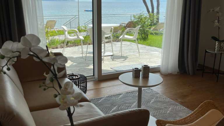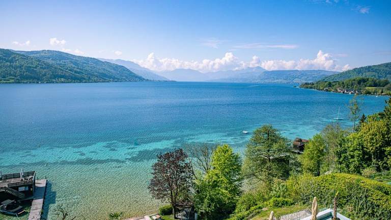 Die Unterkunft befindet sich direkt am Attersee in Seewalchen und bietet einen schönen Bergblick sowie einen eigenen Strandbereich.