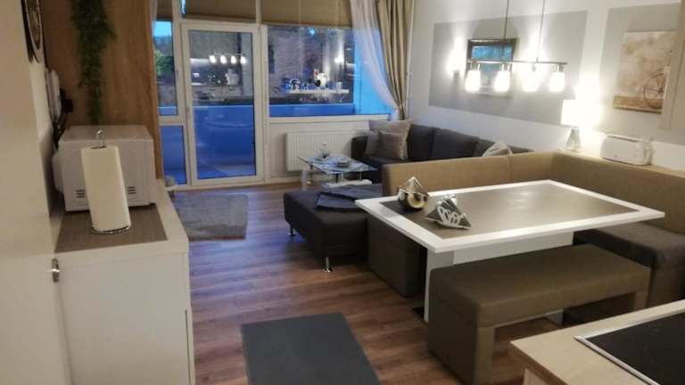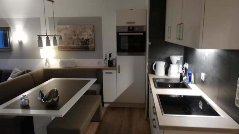 Die Luxus-FeWo-Kleine-Auszeit ist eine kinder- und hundefreundliche Ferienwohnung, die Übernachtungsmöglichkeiten mit Balkon bietet. Sie verfügt über eine voll ausgestattete Küchenzeile und bietet Bequemlichkeiten wie Internetzugang (WLAN).