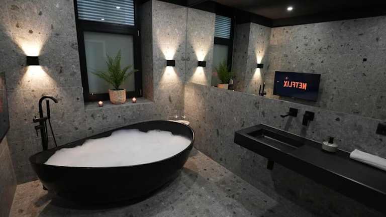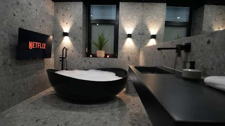Das Luxusapartment mit Badewanne und Parkplatz bietet eine moderne Ausstattung mit Whirlpool. Die Unterkunft ist eine Nichtraucherunterkunft, die von einem privaten Gastgeber geführt wird, und es sind keine Junggesellen- oder Junggesellinnenabschiede erlaubt.
