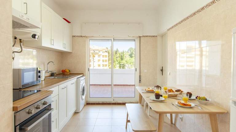 Das Apartment umfasst 2 Schlafzimmer und 2 Badezimmer mit einer Dusche. Es ist mit einer gut ausgestatteten Küche, einem Kühlschrank, einem Geschirrspüler sowie Handtüchern und Bettwäsche ausgestattet.