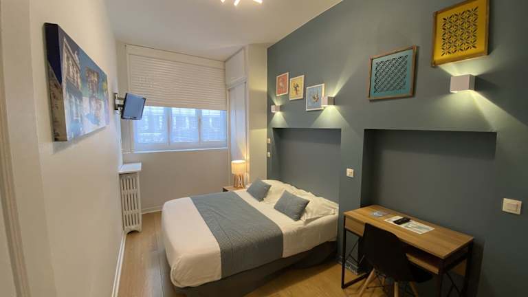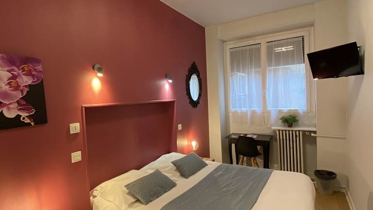 Die Zimmer im Lyo Hôtel sind ausgestattet mit einem Flachbild-TV, einem Schreibtisch sowie einem eigenen Bad und Kleiderschrank. In ausgewählten Zimmern finden Gäste sogar eine Whirlpool-Badewanne vor.