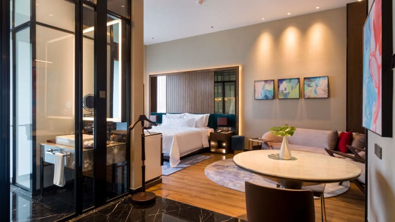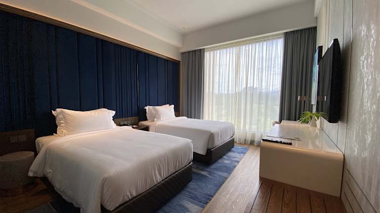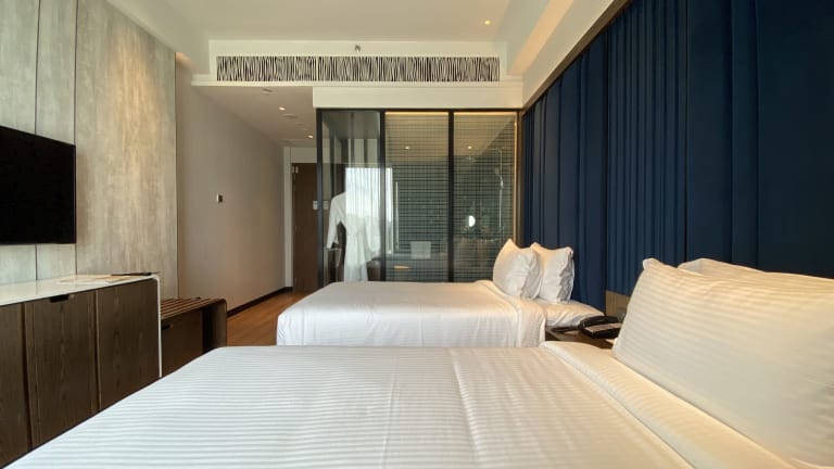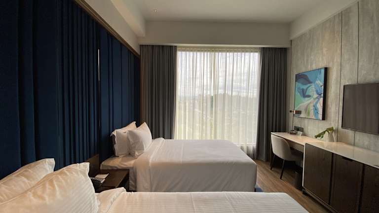 Die klimatisierten Zimmer sind mit Doppel- oder Kingsize-Betten ausgestattet und verfügen über Annehmlichkeiten wie einen Safe, eine Minibar, einen Schreibtisch, eine Tee-/Kaffeemaschine sowie ein eigenes Badezimmer mit Dusche und Haartrockner. Alle Zimmer sind mit Teppichböden gestaltet und bieten zudem Hausschuhe, Sat-TV und kostenfreies Wifi.