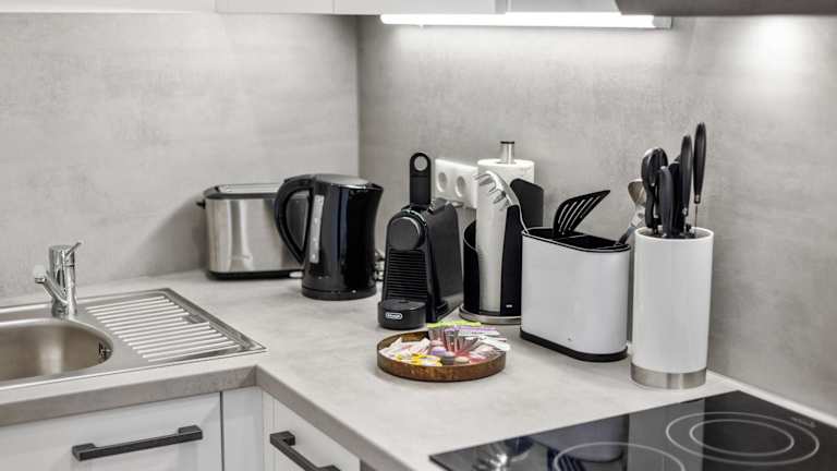 Die Ferienwohnung besteht aus einem Schlafzimmer, einem Wohnzimmer, sowie einer voll ausgestatteten Küche mit einem Kühlschrank und einer Kaffeemaschine. Es gibt ein Badezimmer mit Dusche und kostenlosen Pflegeprodukten. Die Unterkunft ist klimatisiert und verfügt über schallisolierte Zimmer sowie Nichtraucherbereiche. Sie bietet zudem Gartenmöbel und eine Sonnenterrasse.