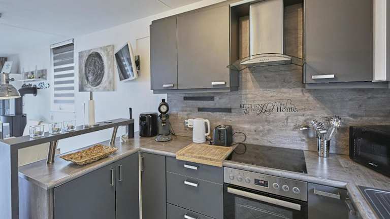 Die Unterkunft bietet ein Ferienhaus mit 2 Schlafzimmern, einem Wohnzimmer sowie einer gut ausgestatteten Küche, die mit einem Kühlschrank und einem Geschirrspüler ausgestattet ist. Eine Terrasse steht ebenfalls zur Verfügung.